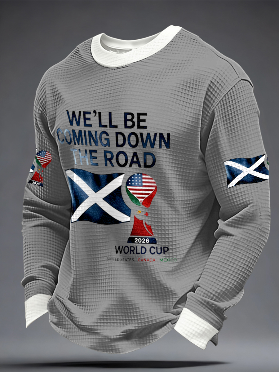 Men's UK Football Lover Scotland We'll Be Coming 2026 Printed Waffle Sweatshirt