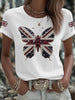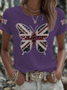 Women's British imitation diamond hot-drilling Printed Iron On Short Sleeve T-Shirt