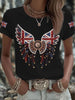 Women's British imitation diamond hot-drilling Printed Iron On Short Sleeve T-Shirt