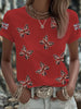 Women's British imitation diamond hot-drilling Printed Iron On Short Sleeve T-Shirt