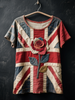 Women's british patchwork Rose Printed short-sleeved T-shirt