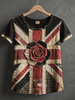 Women's british patchwork Rose Printed short-sleeved T-shirt
