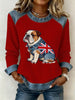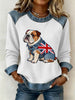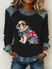 Women's British Style Bulldog Flowers Print Waffle Sweatshirt