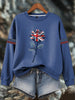 Women's British style imitation denim rhinestone hot-drill Print Sweatshirt