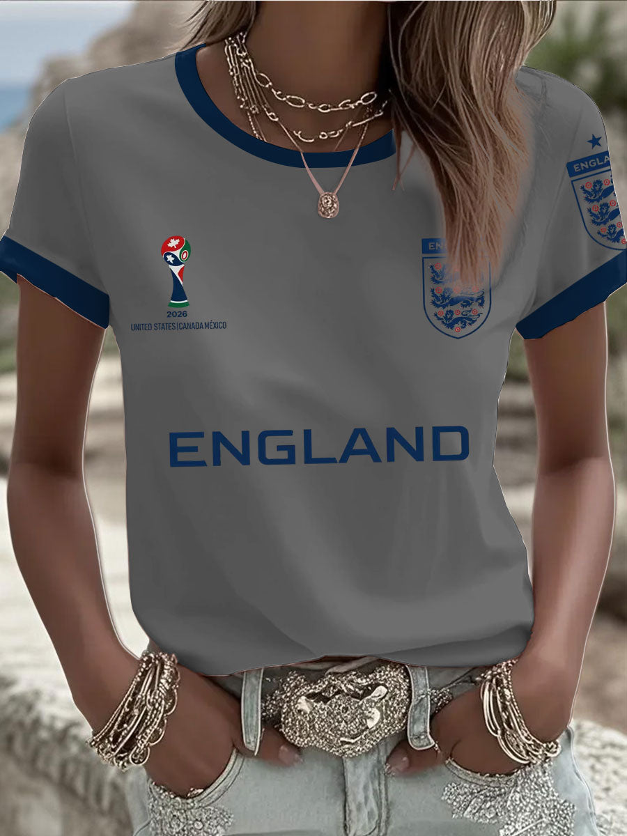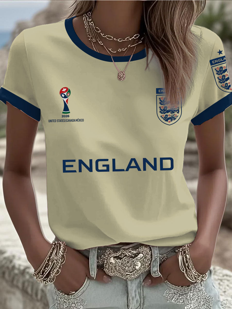 Women's UK Football Lover England 2026 Printed short-sleeved T-shirt